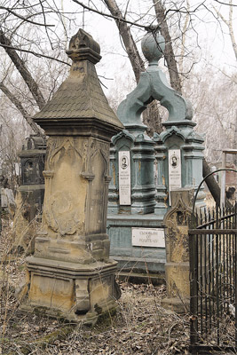 Несмотря на то что в 1905–1906 годах тотальных погромов Иркутску удалось избежать, жертвы молодчиков из «черной сотни» были и здесь. Некоторые захоронения на Лисихинском относятся как раз к тому периоду. Вот на одном постаменте – два одинаковых памятника, соединенные изящной аркой: