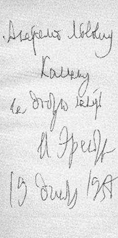 [2] Письма Каплана приводятся по подлинникам из архива Эренбурга: РГАЛИ. Ф. 1204. Оп. 2. Ед. хр. 1651. Письма Эренбурга печатаются по фотокопиям, любезно переданным, наряду с несколькими автографами писателя Каплану, моим (теперь уже американским) другом А.М. Щедринским. – Б. Ф. Все письма публикуются с сохранением пунктуации оригиналов. – Ред.