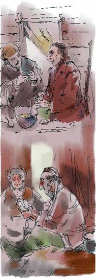 Перебросив курджун через плечо, Старик вернулся в кибитку. Кубатбек успел расстелить ситцевую тряпицу на полу, поставил на нее две пиалушки и красный, с оббитым носиком, чайник.