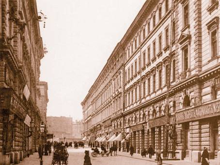 Уже через два года Кнебель вместе со своим новым московским другом, обрусевшим немцем Павлом Францевичем Гроссманом (соавтором упомянутого «Путеводителя»), основал книготорговую фирму «Гроссман и Кнебель», состоявшую из книжного магазина и «библиотеки для чтения», разместившихся в нескольких помещениях дома № 13 в Петровских линиях (ныне – дом № 1/20). Вот как описана эта улица в романе Бориса Пастернака «Доктор Живаго»: «Петровские линии производили впечатление петербургского уголка в Москве. Соответствие зданий по обеим сторонам проезда, лепные парадные в хорошем вкусе, книжная лавка, читальня, картографическое заведение, очень приличный табачный магазин, очень приличный ресторан, перед рестораном – газовые фонари в круглых матовых колпаках на массивных кронштейнах. <...> Здесь жили серьезные, уважающие себя и хорошо зарабатывающие люди свободных профессий».