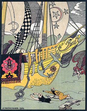 Иллюстрация Д. Митрохина к сказке В. Гауфа «Корабль-призрак». Москва, 1913 год