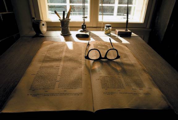 Письменный стол Шмуэля-Йосефа Агнона и его личные вещи. Экспозиция дома-музея писателя в Иерусалиме. 2011 год