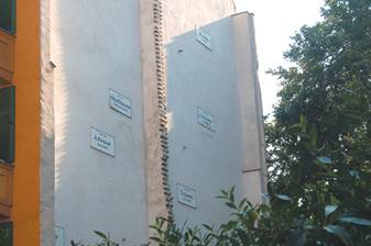 Самый любопытный памятник появился напротив кладбища недавно. «Отсутствующий дом» — работа крупнейшего современного художника Франции, автора французского павильона на последней Венецианской биеннале Кристиана Болтански. Он создал ее в 1990-м на месте разбомбленного 3 февраля 1945 года дома 15/16 по Гроссе Гамбургерштрассе. На брандмауэры соседних домов он прикрепил таблички с информацией о погибших жителях. С именами депортированных жильцов — евреев и тех, кто занял их жилье. Ненадолго. Помню табличку с именем Герберта Буджиславски, выбывшего из дома 15/16 в 1942-м. Навсегда.