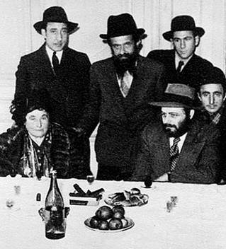 Хана Шнеерсон с сыном Менахемом-Мендлом (сидят). Париж. 1946 год