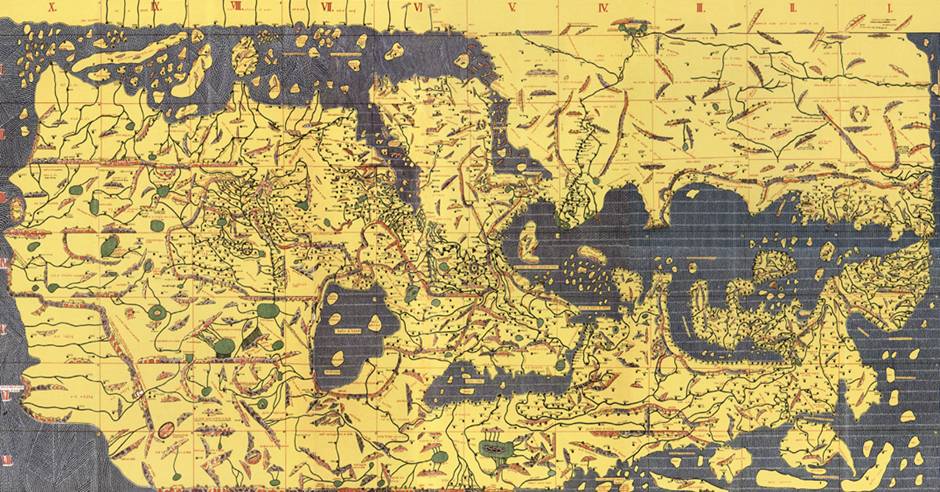 Реконструкция карты арабского картографа аль-Идриси (современника Альхаризи), составленной для сицилийского короля Рожера II в 1154 году.