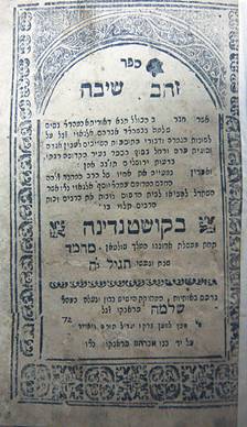 Слева. Титульный лист книги Шломо Альгази «Заав сейва». Константинополь. 1688 год