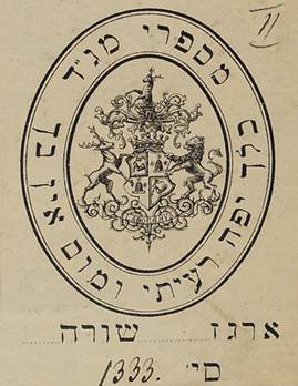 Как была собрана такая большая и ценная коллекция? Гинцбурги вели дела с рядом книготорговцев, которые присылали списки книг, предложенных на продажу, а также специалистов по старинным книгам и рукописям. Архивные материалы донесли до нас имена некоторых из этих людей. Так, еврейский отдел составлялся по частям путем закупок, преимущественно через книготорговцев: Фишеля Гирша, Э. Аскинази и М. Липшица в Париже, через торговцев антикварными книгами Э. Дайнерда в Одессе и Я. Гинцбурга из Бобруйска, через книжный магазин вдовы Цукерман в Варшаве, Я. Шефтеля из Киева, Я. Кауфмана из Франкфурта-на-Майне, А. Гиршлера из Вены и др. На многих книгах имеется штамп книжного магазина или рукописная заметка, видимо, библиотекаря Гинцбургов, например: «Книга куплена у Я. Гинцбурга из Бобруйска, цена 3 рубля». В одной из книг (Гин 2/2603) лежит открытка книготорговца Х. Вальтера из Парижа от 10.04.1902, в которой он запрашивает Д. Гинцбурга, прислать ли ему книгу «Тиферет Цви». Принадлежность книг к коллекции Гинцбургов подтверждается экслибрисами, которые, за немногими исключениями, наклеены на всех книгах. Это прямоугольная наклейка размером 5 х 7 см с овальным рисунком: лев и олень держат геральдический щит с гербами. Наверху надпись: «Из книг МГД» (пока убедительной расшифровки аббревиатуры не предложено), внизу фраза из Песни Песней: «Вся ты прекрасна, возлюбленная моя, и пятна на тебе нет». Далее указаны шкаф, ряд и номер. Некоторые книги отмечены собственной печатью Давида Гинцбурга, на других написано: «Книга принадлежит Йосефу-Евзелю Гинцбургу» (Гин. 4/3954, 2/3082 и др.) или встречается надпись «Гораций Гинцбург».