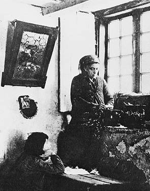Нельзя сказать, что такая стопка водки понравилась крестьянину. Мужичок уже знает все еврейские штучки, во все свои серенькие глазки следит за ловкими Хаиными руками и торгуется. Затем подносит стопку к окну, смотрит на свет и снова торгуется: