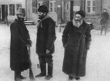 Тут доносятся молодецкое щелканье кнута, скрип и стук еврейской кибитки. Затем «тпр-ру», сопровождаемое проклятиями, которыми извозчик осыпает своих «залетных». Еврейские лошади ржут, и замерзшие шудаки хлопают себя заиндевевшими рукавами. В шинок в облаке пара входит дядя Зяма в подпоясанном широким шерстяным кушаком овчинном тулупе поверх шубы на хорошем меху, а за ним — Мейлехке Пик, его одаренный зятек, с замерзшим остреньким носом.